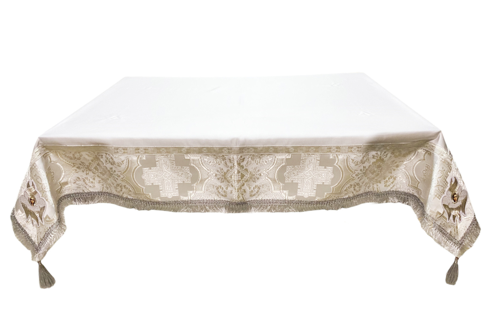 Скатерть напрестольная Материал: парча турция, атлас Размер: ↕160см ↔160см Цвет: белая