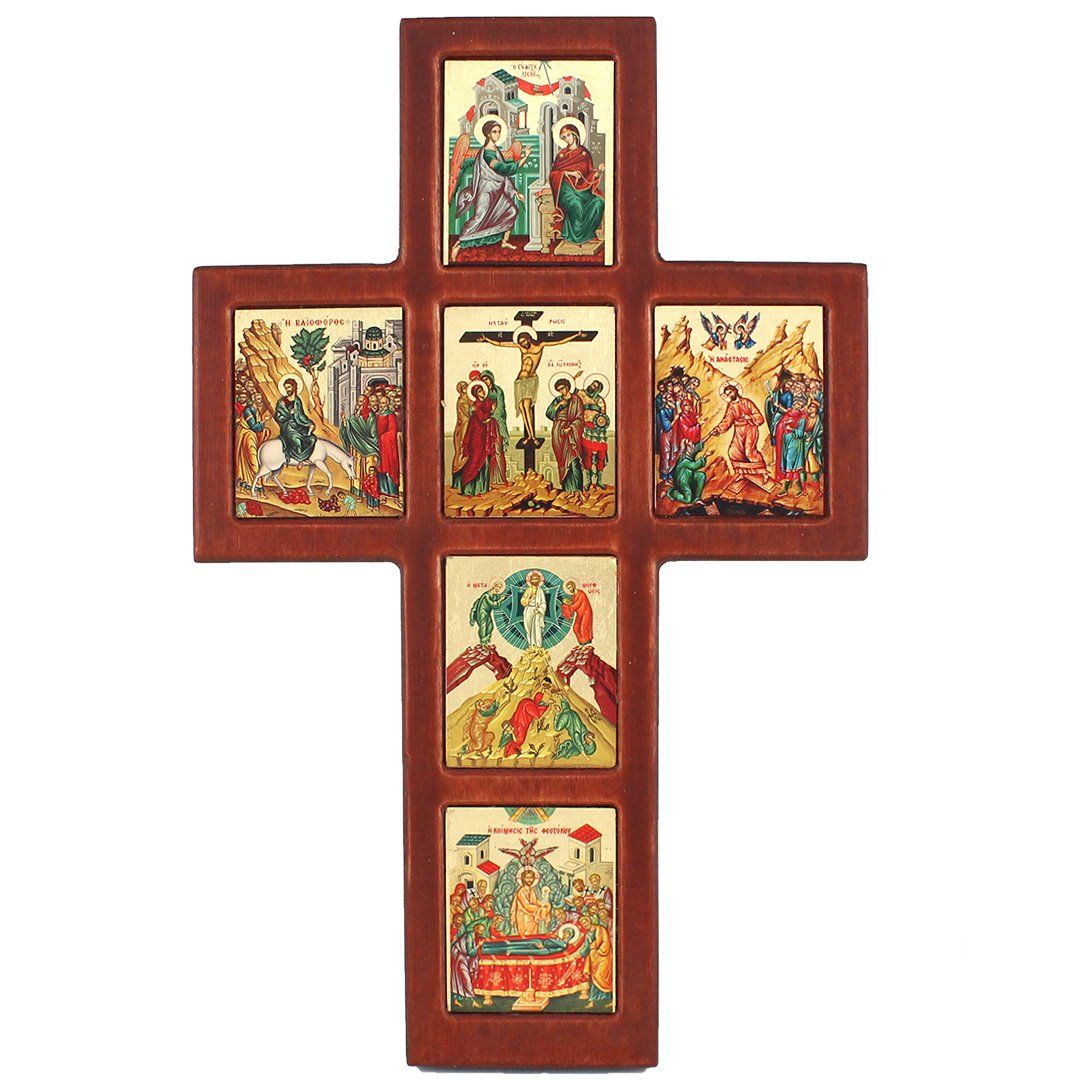 ХРЕСТ-ІКОНОСТАС ↕32см ↔20см Дерево Шовкографія Сусальне золото Греція Е406