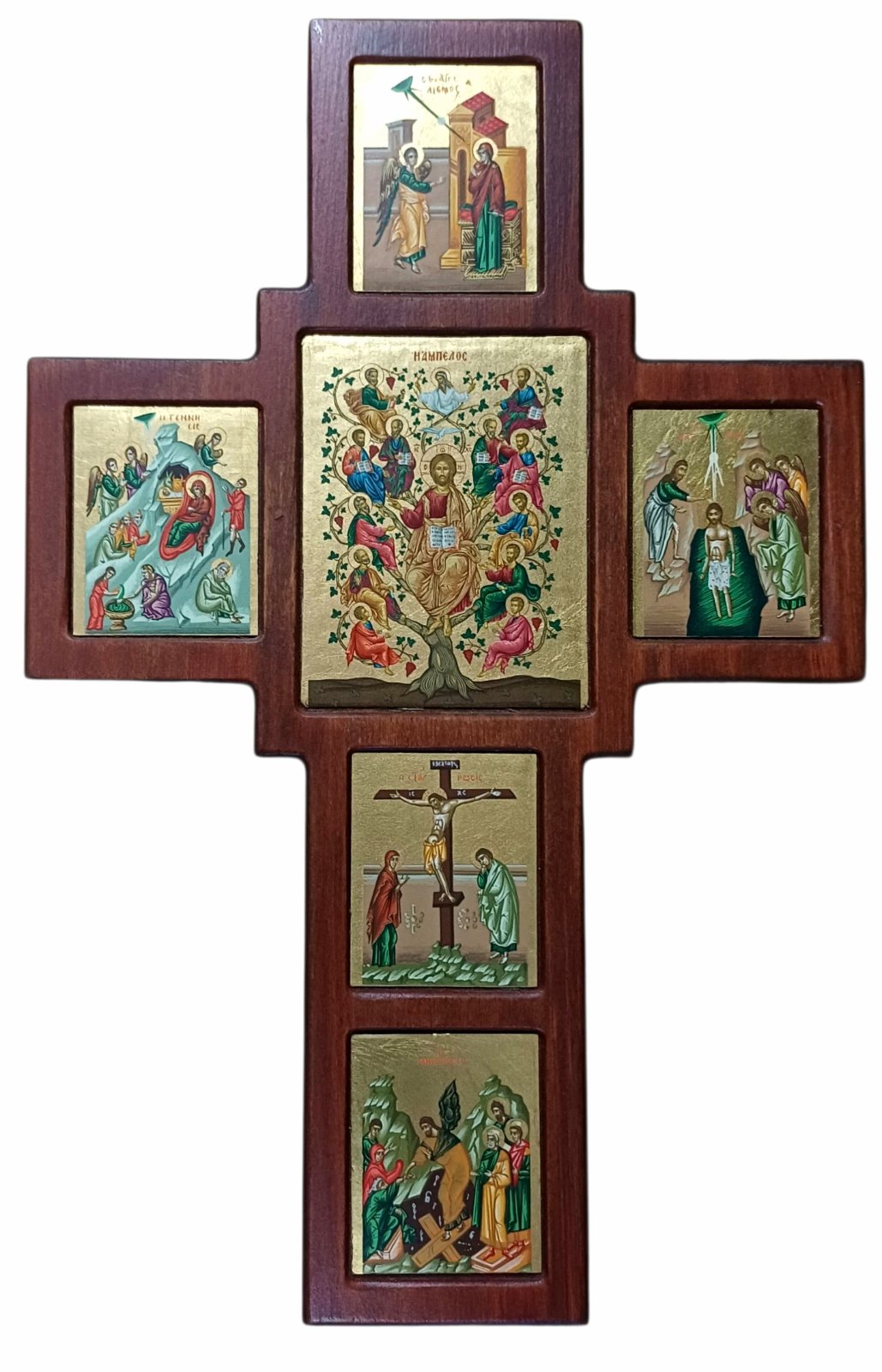 ХРЕСТ-ІКОНОСТАС ↕34см ↔23см Дерево Шовкографія Сусальне золото Греція Е420