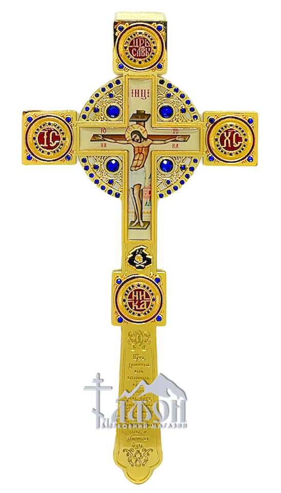 ХРЕСТ Напрестольний ↕31см ↔15.7см Латунь Емаль Синій