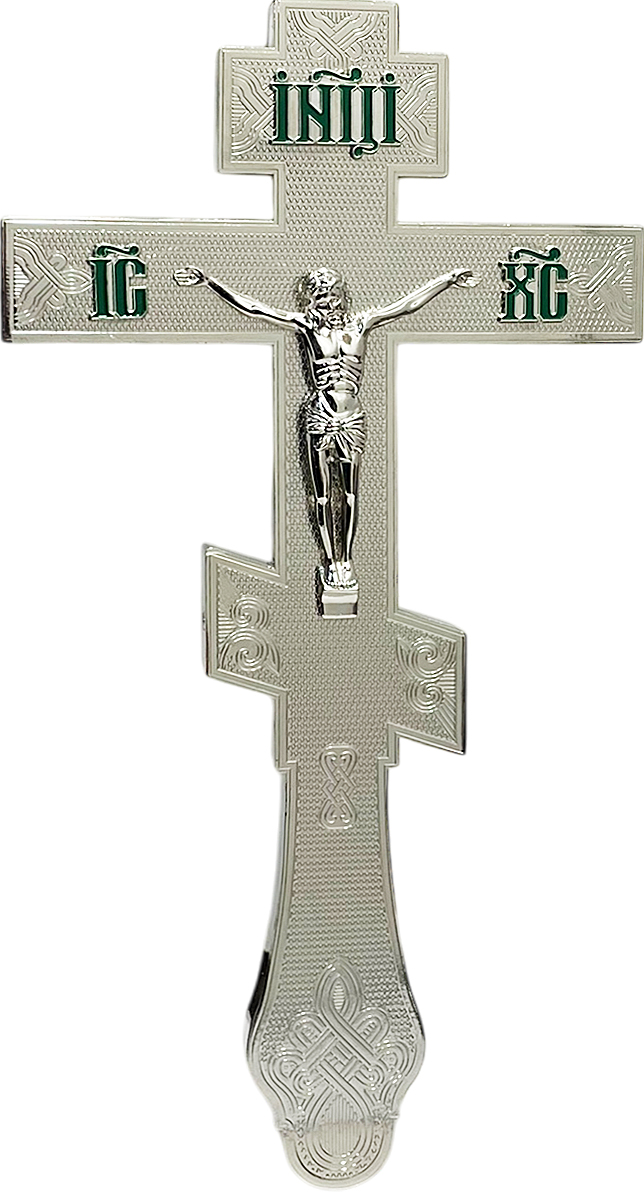 ХРЕСТ Напрестольний   ↕30см ↔16см Нікель Емаль Зелений
