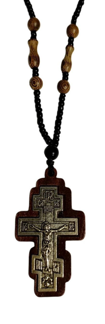 Хрестик НАТІЛЬНИЙ ↕4,7см ↔3см Бісер Метал Дерево