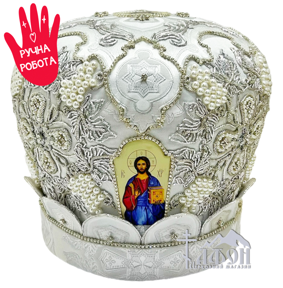 МИТРА Біла Розмір 60 Парча Вишивка Штучні перли