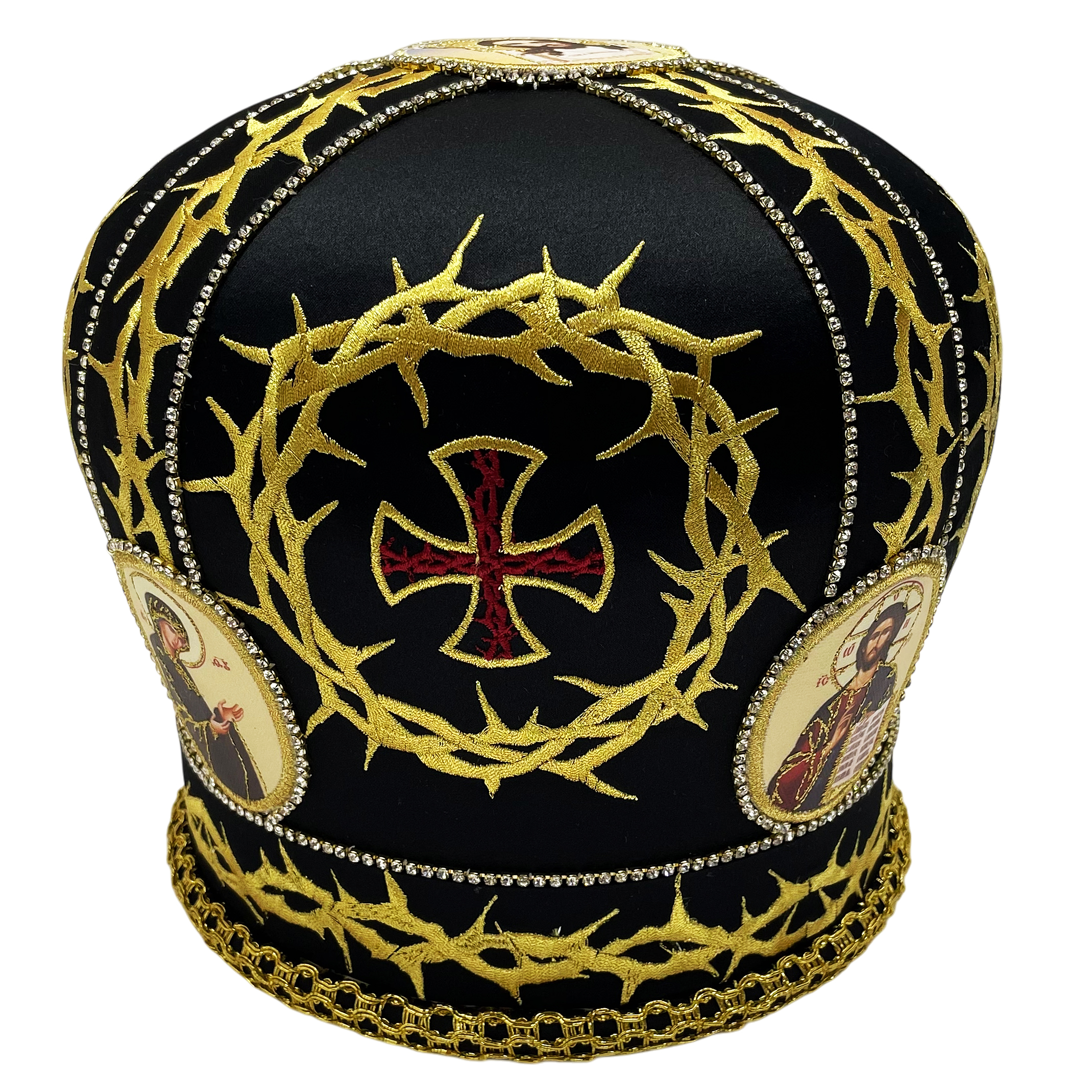 МИТРА Чорна Розмір 57.5р Королівський атлас Вишивка