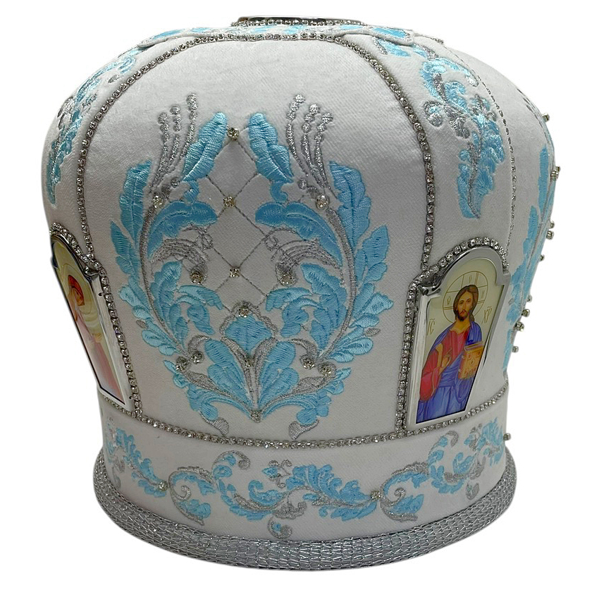 МИТРА Біло-блакитна Розмір 56,5 Оксамит Вишивка