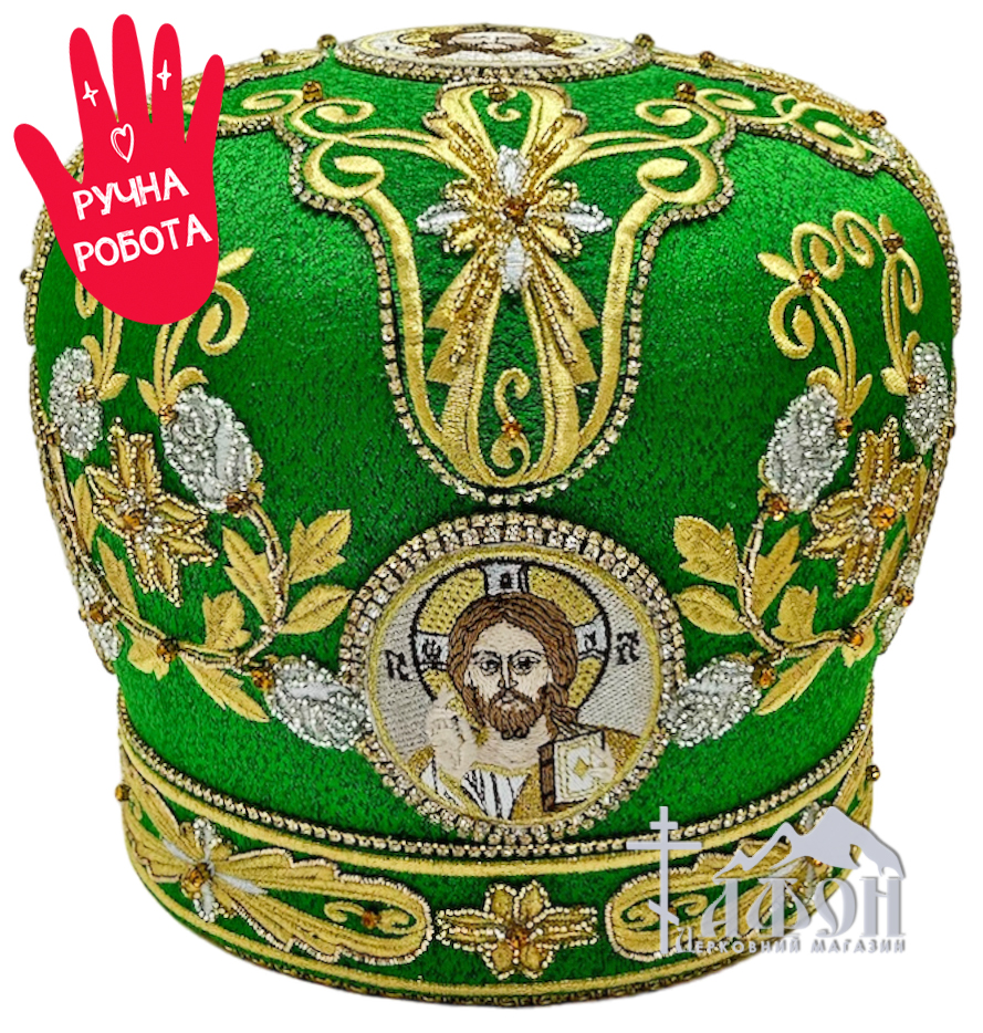 МИТРА Зелена Розмір 60 Парча Вишивка Бісер