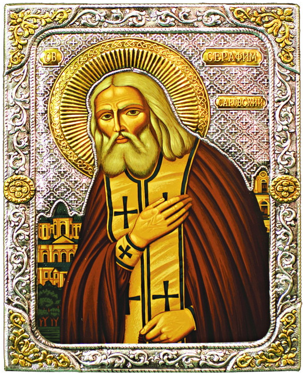СЕРАФИМ САРОВСЬКИЙ ↕26см ↔19см МДФ Шовкографія Срібло Сусальне золото Емаль Греція