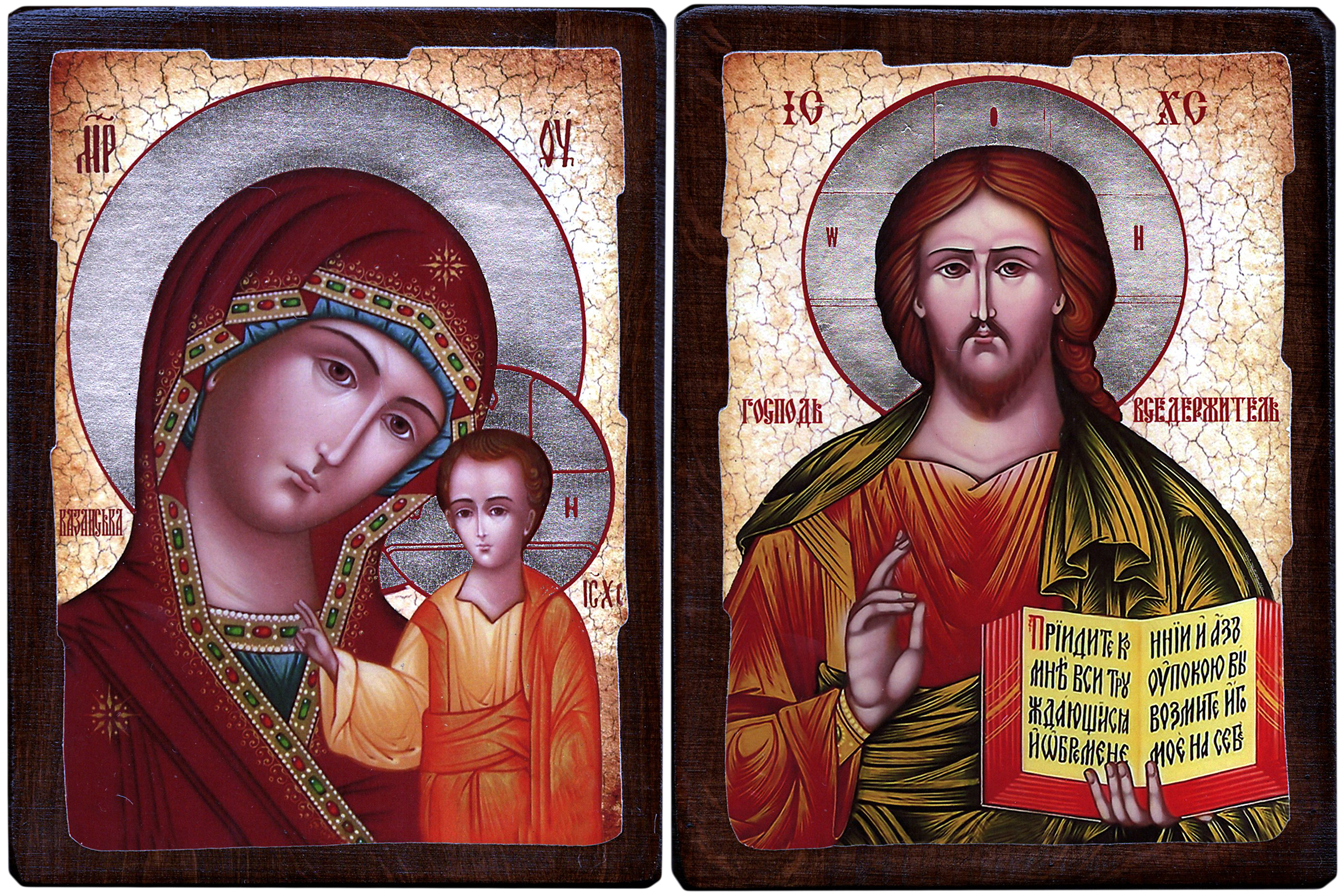 Пара Вседержитель Казанская ↕23см ↔17см Дерево Літографія