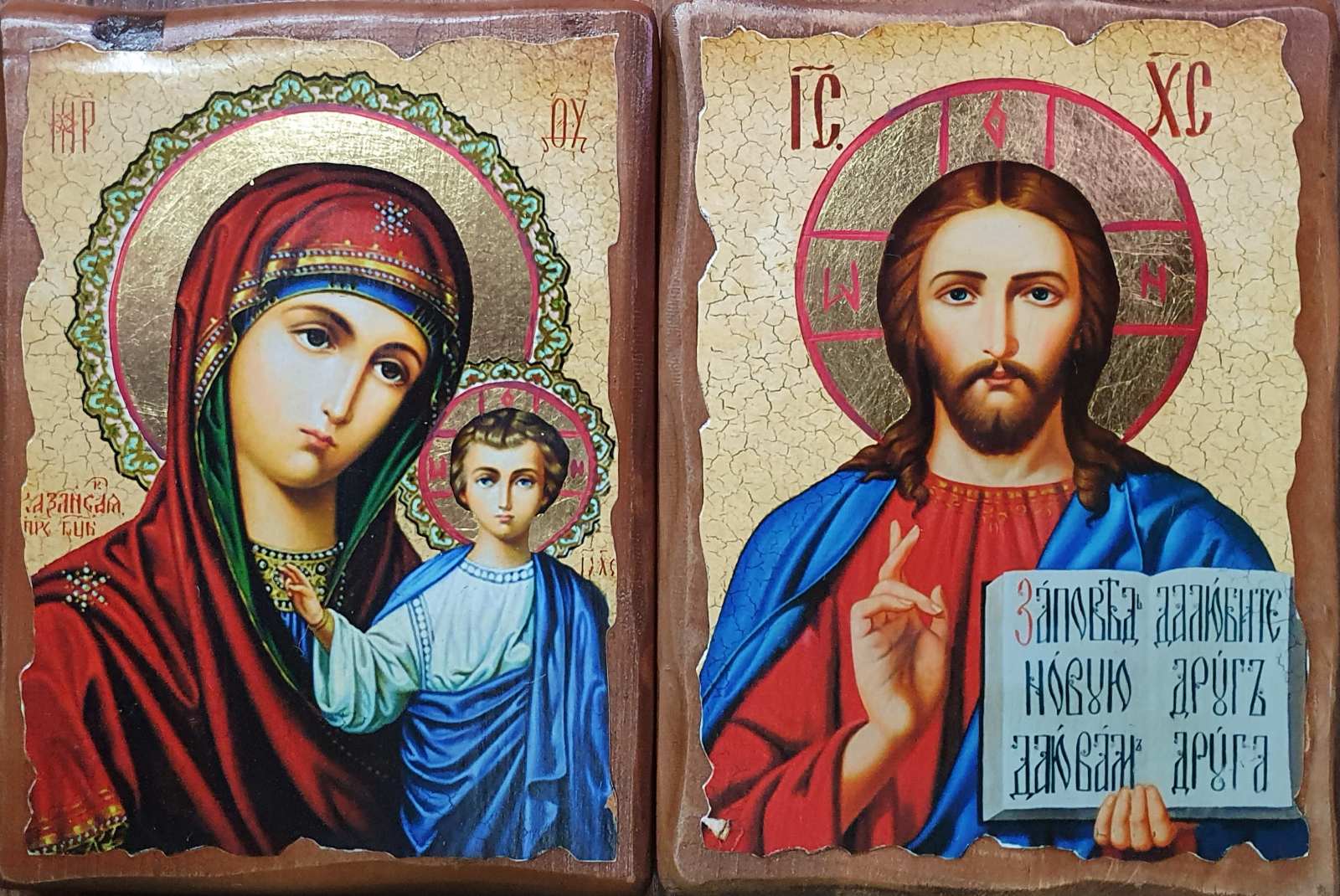 Пара Вседержитель Казанская 23/17см Дерево Литография