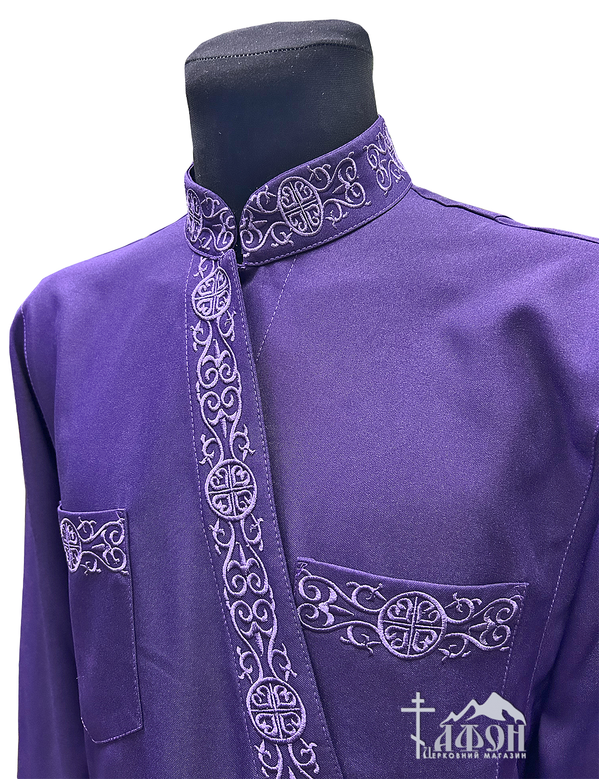 Підрясник грецький Фіолетовий 56р Габардин Вишивка "Грецький хрест"