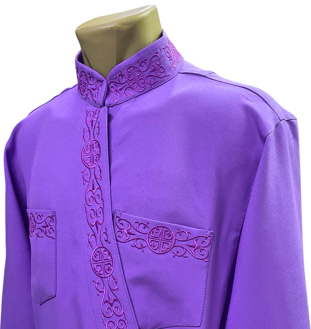Підрясник грецький Фіолетовий 52р Габардин Вишивка "Грецький хрест"