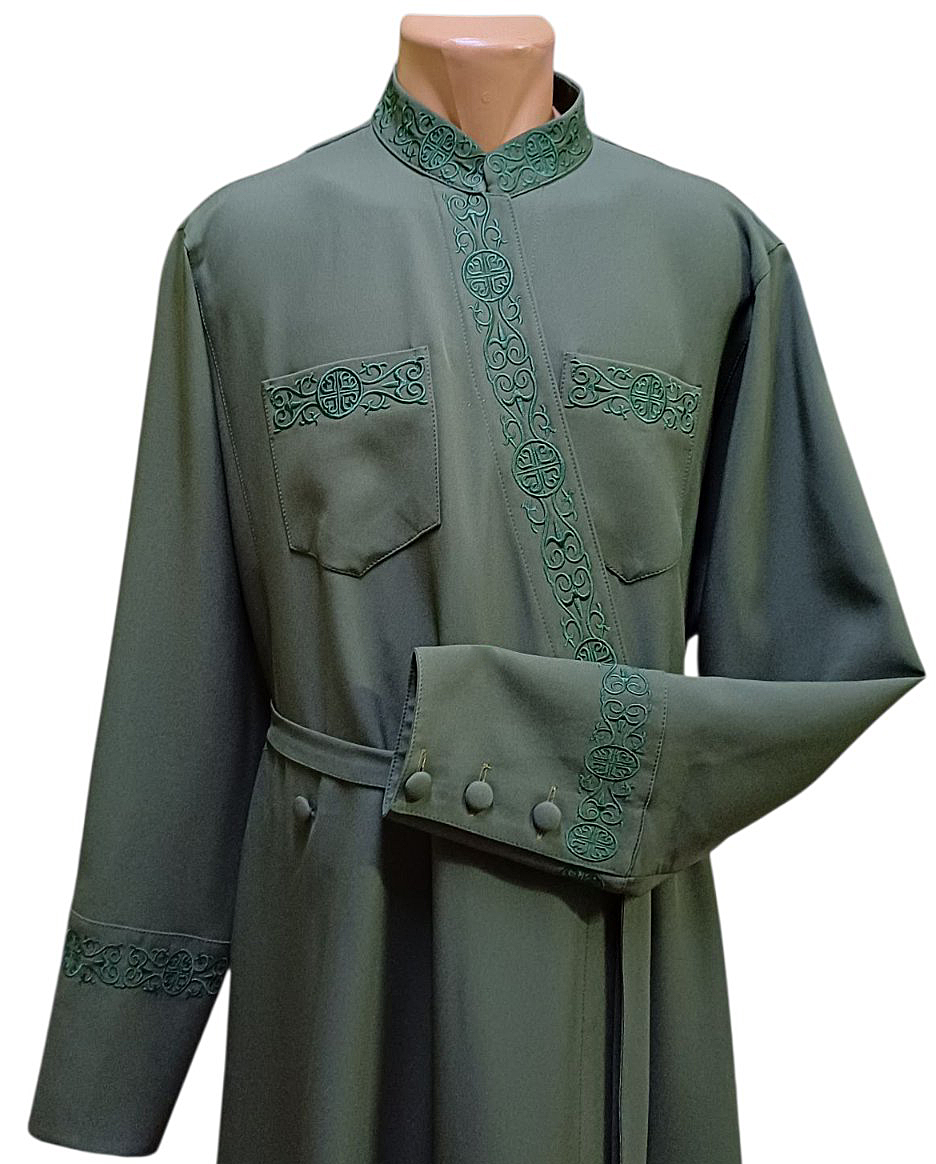 Підрясник грецький Хакі Костюмна тканина 50р Вишивка Хрест