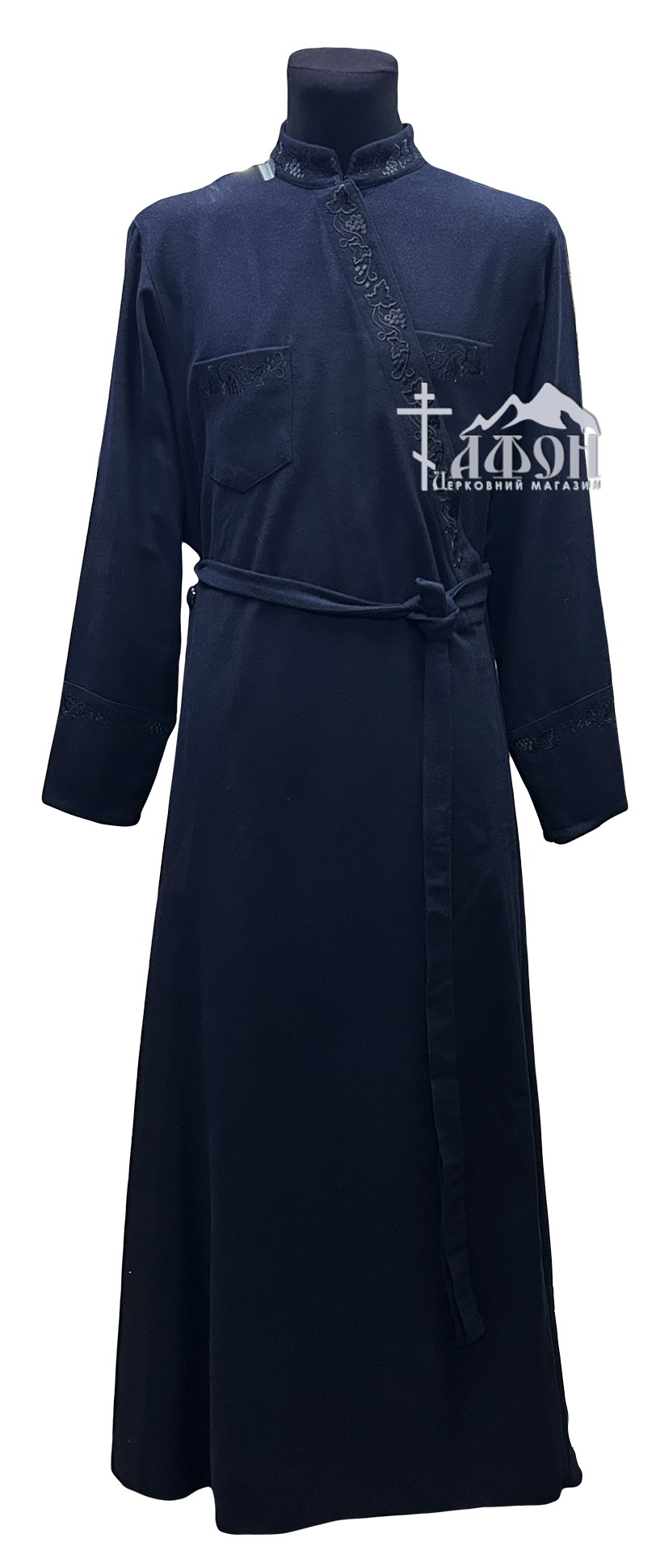 Підрясник грецький Темно-синій 54р Шерсть-віскоза Вишивка Виноград