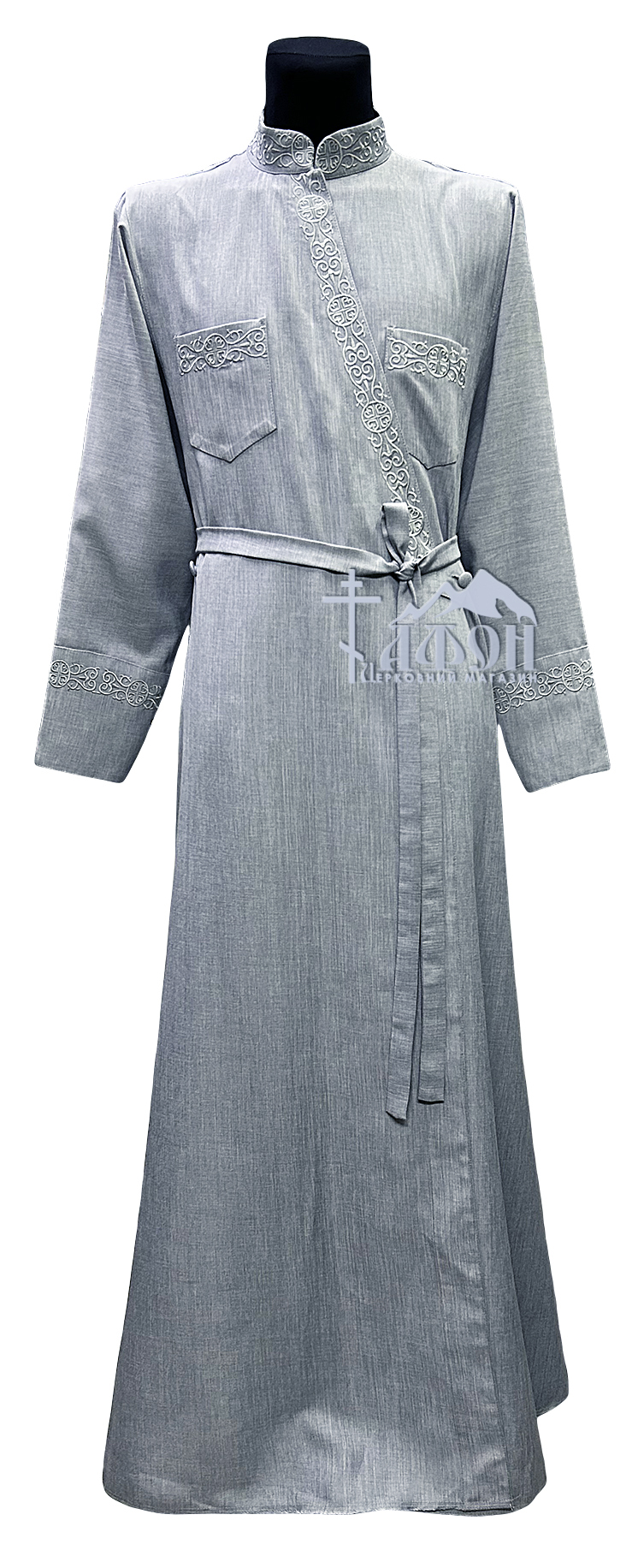 Підрясник грецький Сірий 60р Габардин-льон Вишивка Хрест грецький