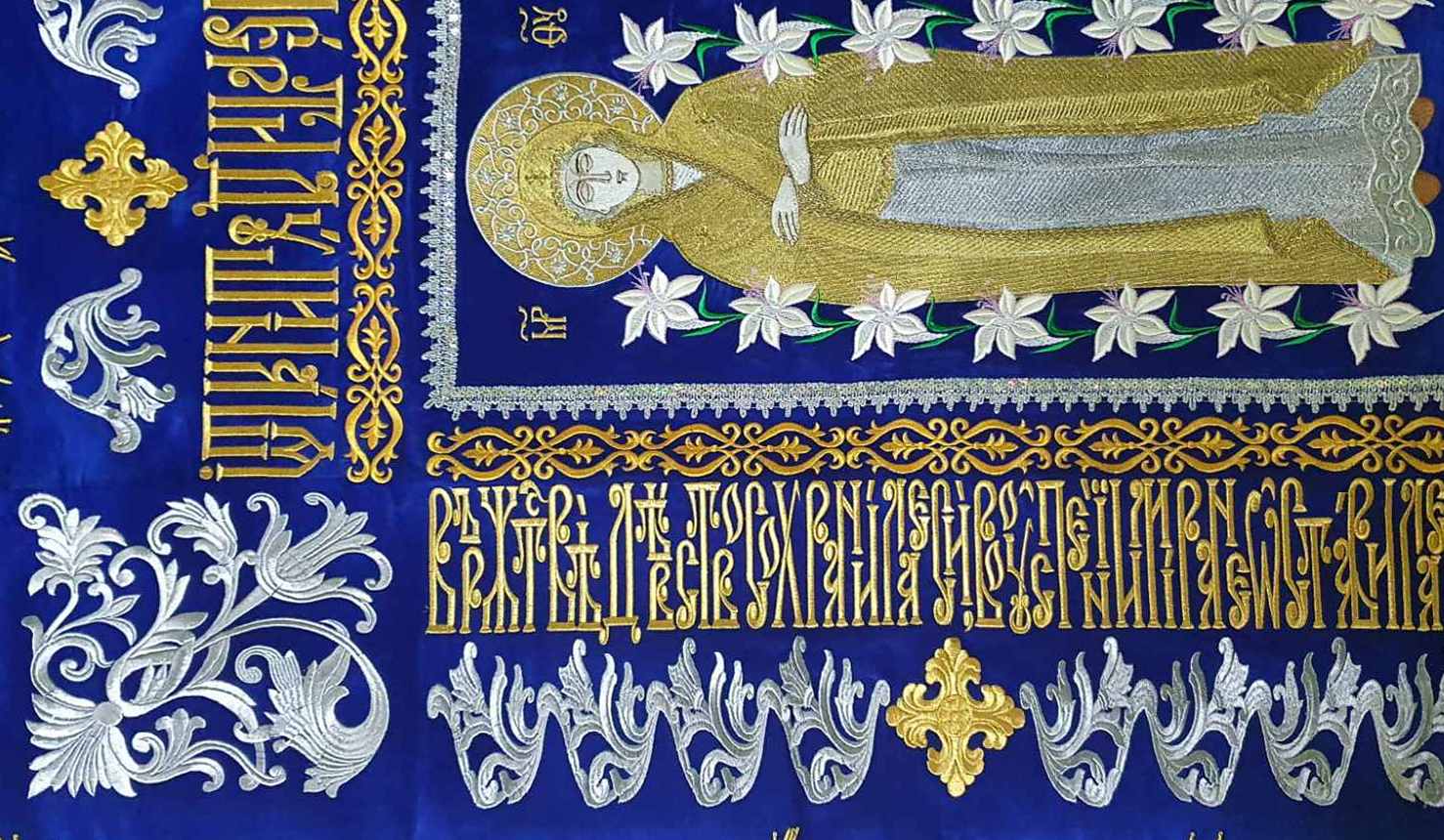 Плащаница БОГОРОДИЦА Синяя 95/140см Бархат Вышивка