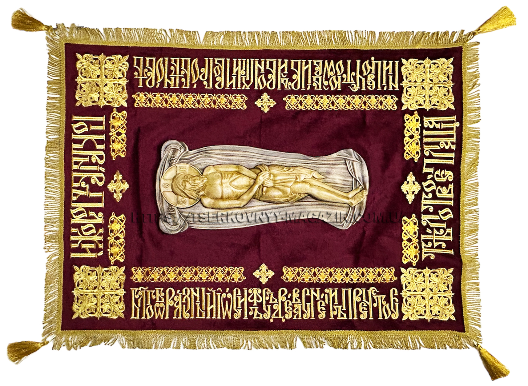 Плащаниця СПАСИТЕЛЬ Бордова 70/95см Оксамит Вишивка 3D фігура із дерева