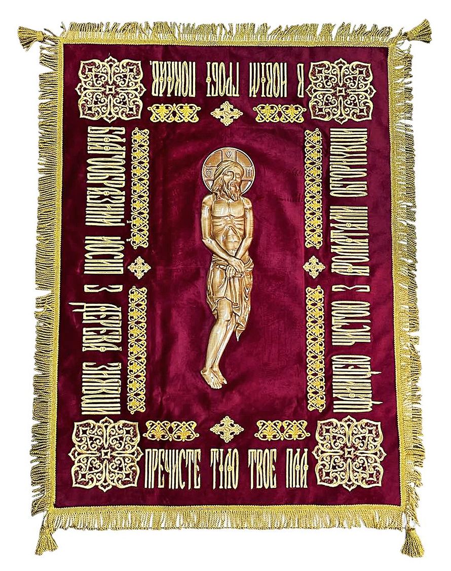 Плащаниця СПАСИТЕЛЬ Бордова 68/95см Штучни оксамит Вишивка 3D фігура із дерева