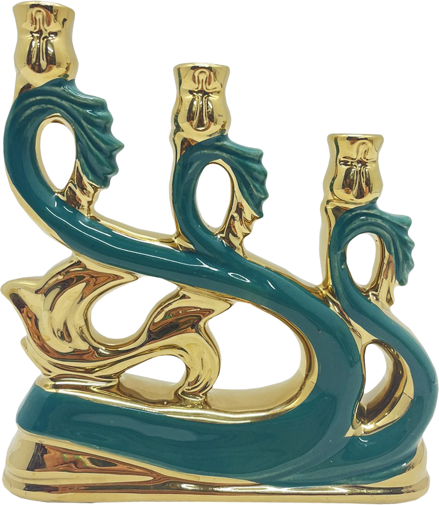 СВІЧНИК Зелений Комбінований Хвиля ↕15,5см
