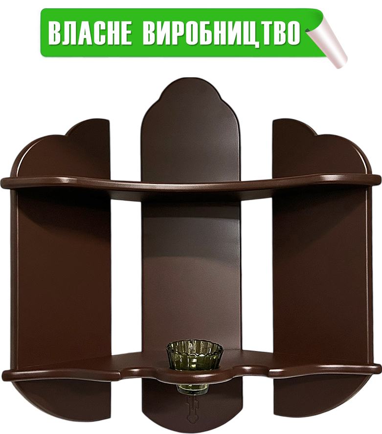 ПОЛИЧКА кутова під ІКОНИ зі стаканом Коричнева ↔56м ↕63см МДФ