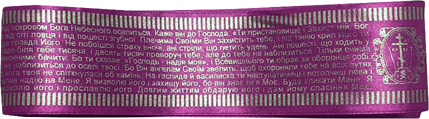 СТРІЧКА з охоронною молитвою УКР мова КОРОТКА 83см Фіолетова