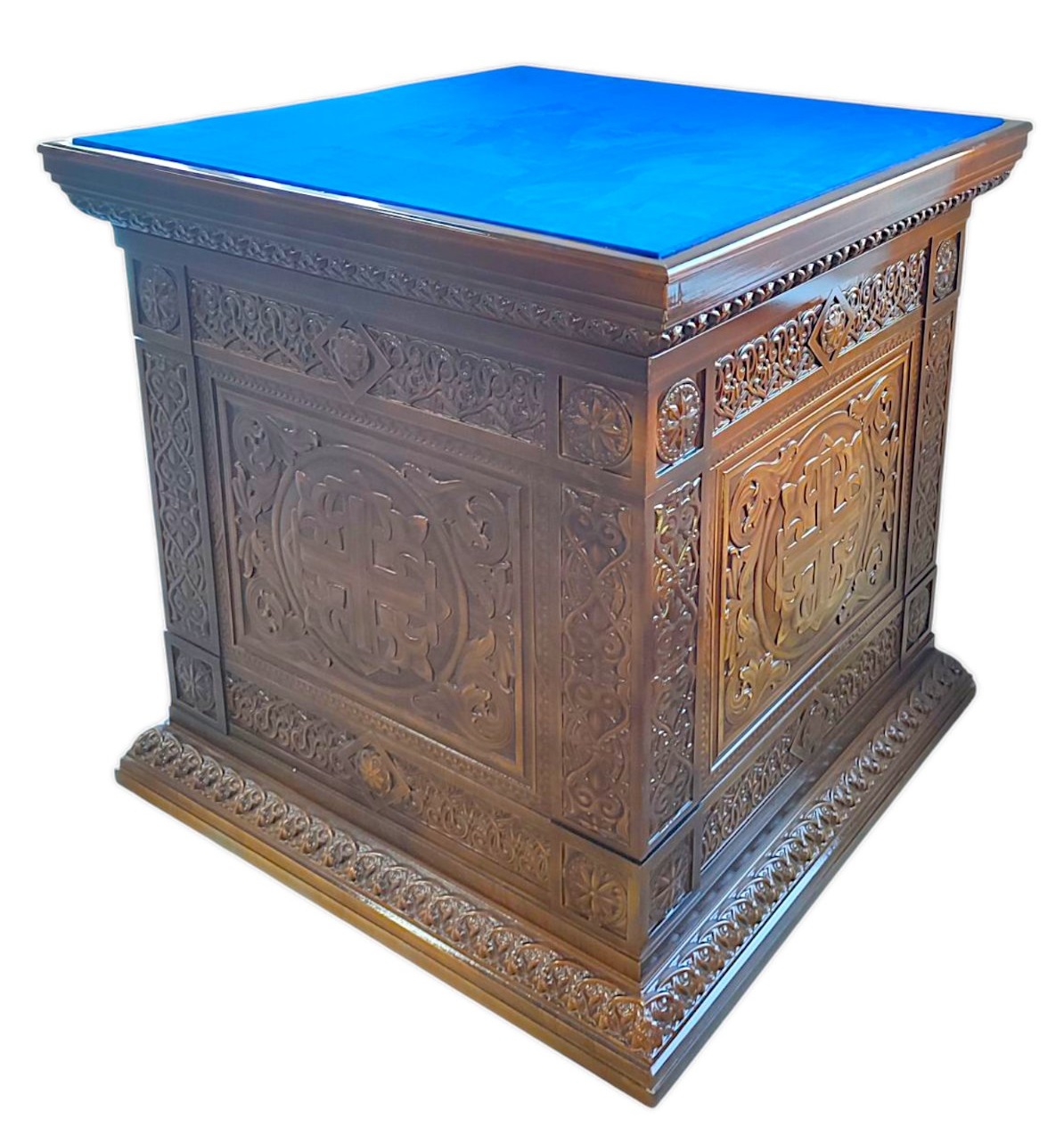 ОБЛАЧЕННЯ НА ПРЕСТІЛ ↑100см ↔100см ↕100см Синій оксамит, Дуб, Різьба