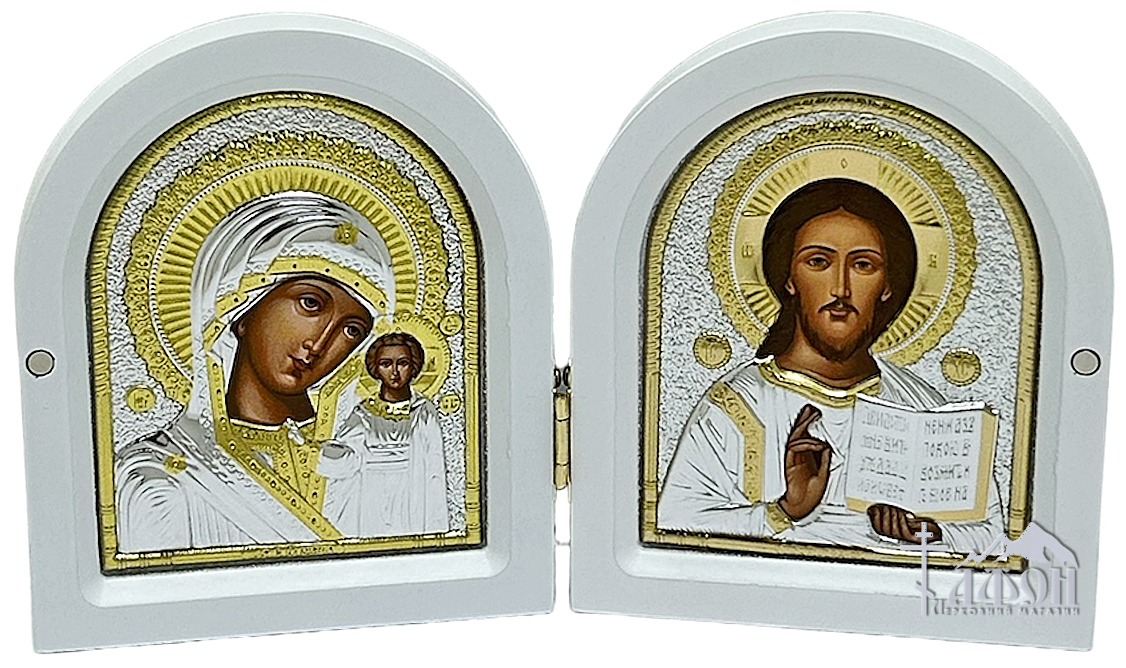 Складень ВСЕДЕРЖИТЕЛЬ КАЗАНСЬКА ↕13см ↔11см МДФ Шовкографія PVD (посріблення) Греція