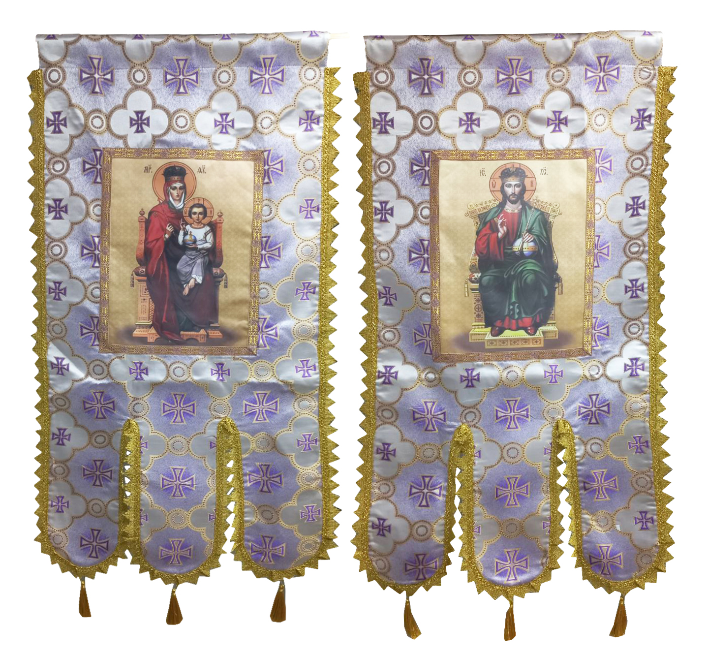 ХОРУГВИ Біло-фіолетові ↕120см ↔60см Парча
