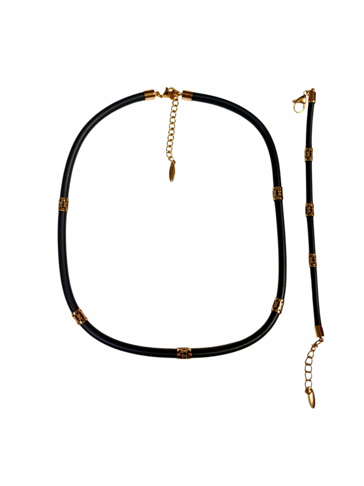 ШНУРОК+БРАСЛЕТ Чорний 50см Карабін КАУЧУК (резина) + Медичний сплав