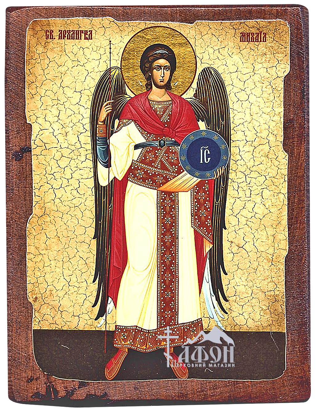 МИХАЇЛ Архангел ↕23см ↔17см Дерево Літографія