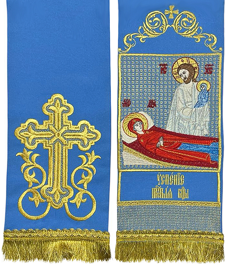 ЗАКЛАДКА для ЄВАНГЕЛІЄ "Успіння" Блакитна 15/140см Габардин Вишивка