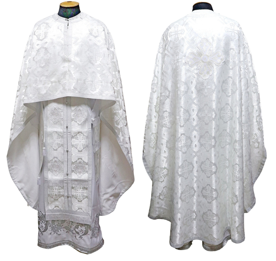 Облачение Белое 56р/д145 см Парча "Греческий крест"