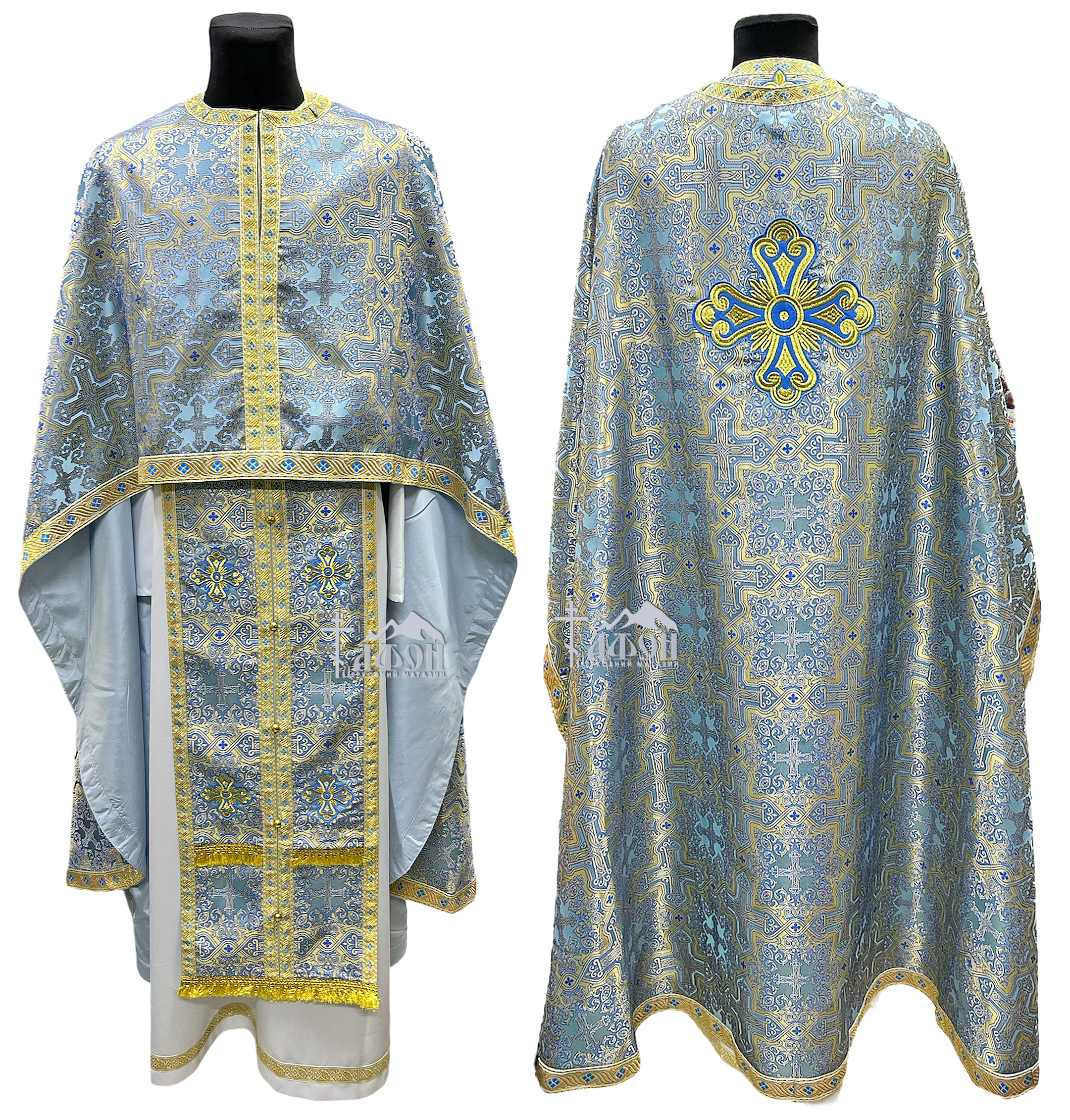 Облачение Голубо-золотое 54р/д145см Парча "Греческий крест"