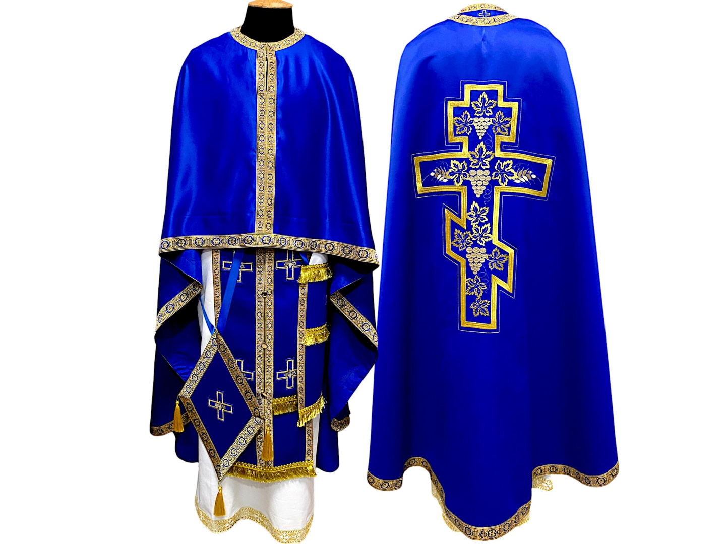 Облачение Синее 56р/д145см Королевский атлас Вышивка