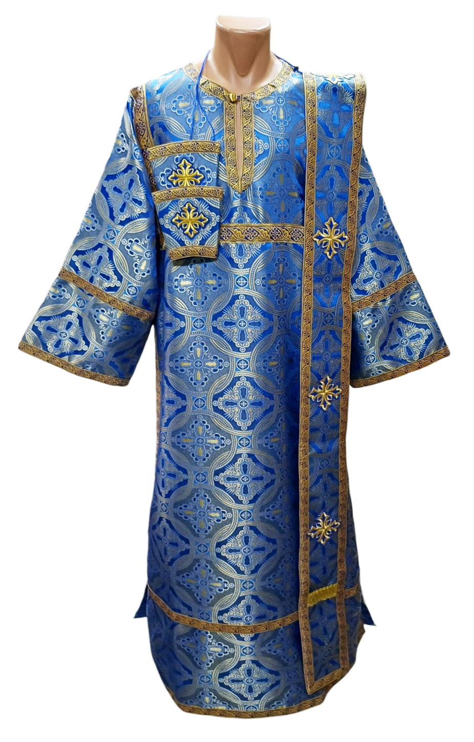 СТИХАРЬ Дьяконский + орарь + поручи Синий 52р/д150см Парча