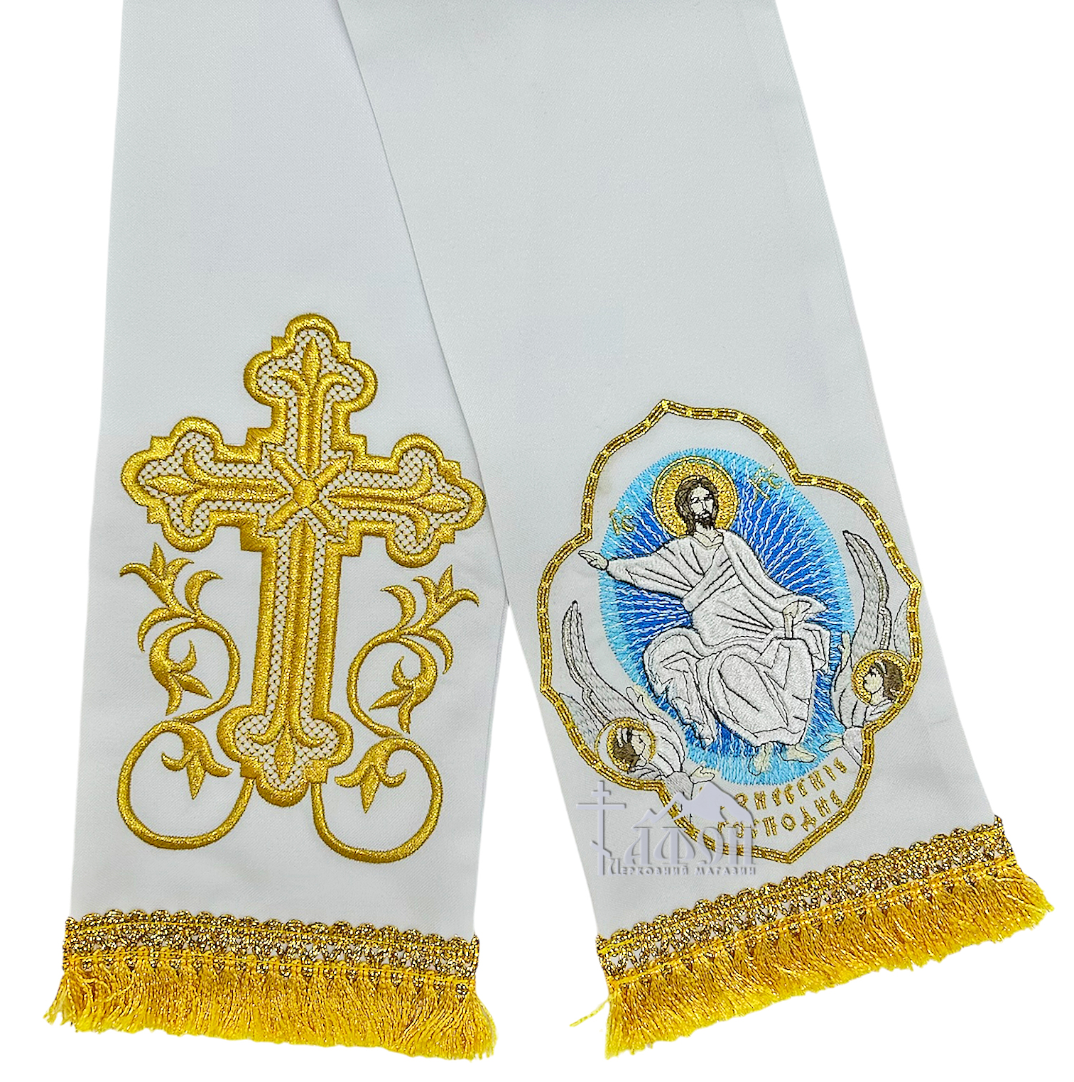 ЗАКЛАДКА для Евангелия "Вознесение" Белая 14/140см Габардин Вышивка